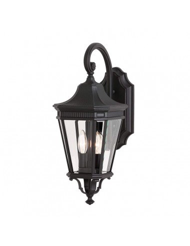 COTSWOLD LANE Udendørs væglampe udført i et design af sortlakeret aluminium og klart glas. Lampen leveres til europæisk standard til 2 x E14 lyskilder og måler 52,1 cm i højden og 22,9 x 29,5 cm i bredde og dybdefremspring. Forventet leveringstid: 8 –
