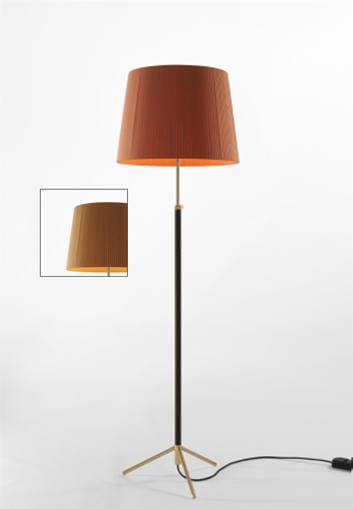 Elegant sennepsgulvlampe med messingdetaljer fra Lampoo Pie Saln er et must-have til dit hjem. Designet af Jaume Sans kombinerer den funktionalitet med stil