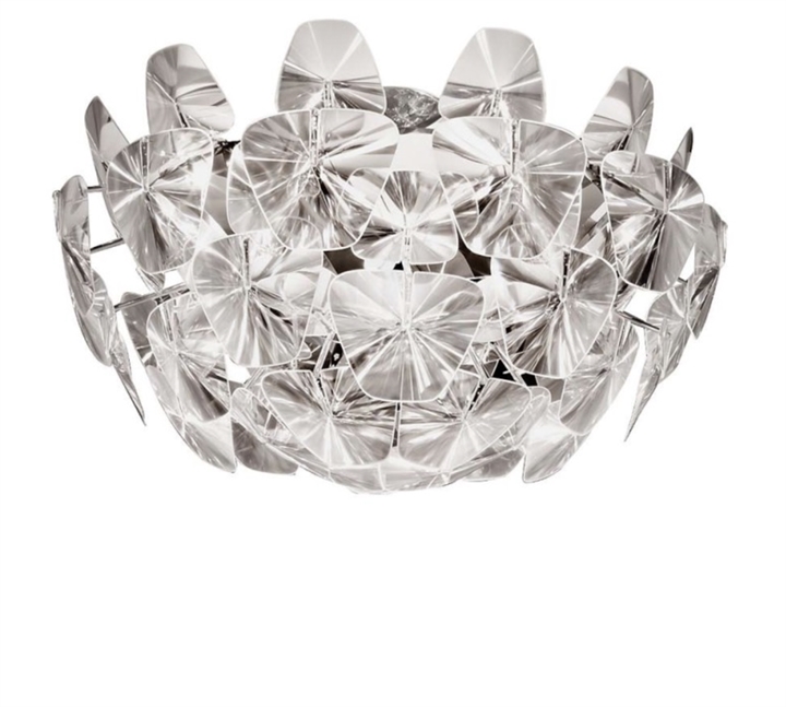 Luceplan Hope loftlampe D6630p, transparent Hope er inspireret af de traditionalle prismelysekroner, som Luceplan har nyfortolket. Hope loftlampen består af materialer som polycarbonat, hvor skærmenes struktur er lavet af poleret rustfrit stål. Derudover