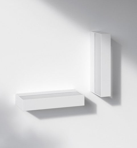 InOut W2 væglampe fra Rotaliana Lampen er lavet af aluminium og to glasplader, der skærmer lysdiodernes direkte lys og fordeler det jævnt i hele rummet. Væglampen kan fås som både indendørs og udendørs, og kan vendes horisontalt og vertikalt. Har du spørg