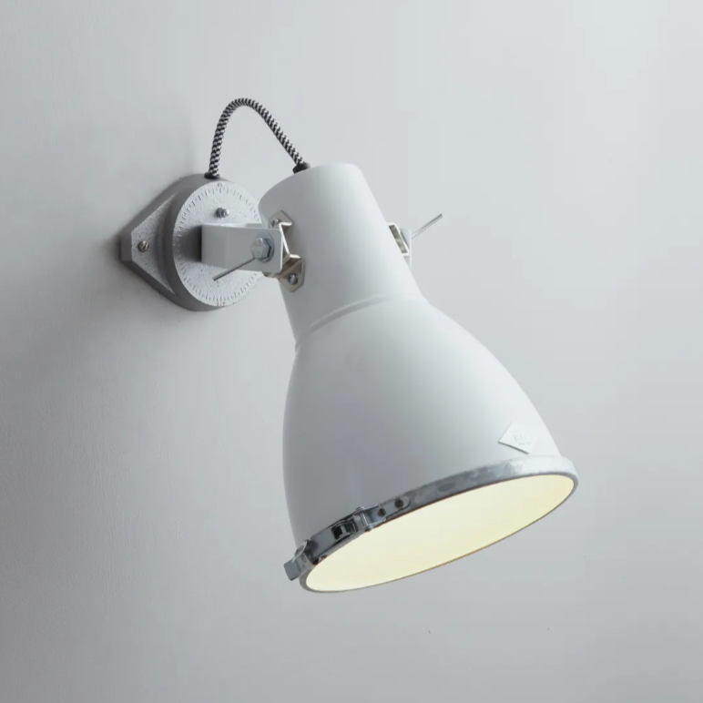 Stirrup 2 wall væglampe Original BTC Designer Original BTC. En væglampe som kan vippe opned og fås i 3 farver. Lampe hovedet har et frostet glas foran. Industrielt look. Farve: poleret aluminium, hvid, sort Fatning: E27 60W Højde: 28 cm Dybde : 37 cm Skæ