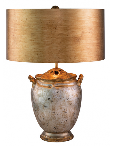 Jackson bordlampe udført i et amerikansk design. Lampen måler 61 cm i højden og 40,6 cm i diameter og leveres til europæisk standard til 1 x E27 lyskilde. Lampen er udført i antik sølvfarvet og antik guldfarvet stål og polyresin. Forventet leveringstid: