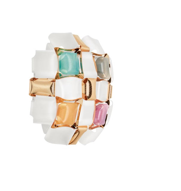 – Polerede cabochon i geometrisk formation over en blomsterkrone