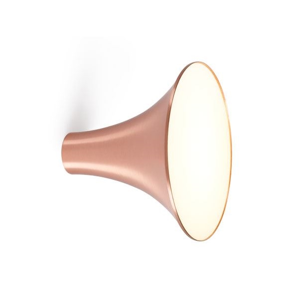 Sirens væglampe fra Trizo21 i stor Ø26,5 – kobber. Sirens er en serie af spejle og lamper med et elegant formsprog. Lampeserien findes som loftlampe væglampe eller som pendel i flere størrelser, overflader og spejllyskombinationer. Sirens er et oplag