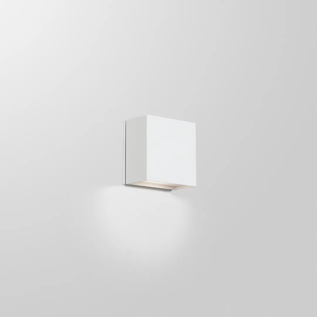 Brick IP65 Lumini Væglampe til inde og udendørs. Valgmulighed for lys ned eller opned. Der er to farver at vælge imellem. Farve hvid eller sort. lyskilde 1 x 5W eller 2 x 5W 2700 CRI 90 Bredde 10,2 cm Højde 10,2 cm Dybde 5,8 cm
