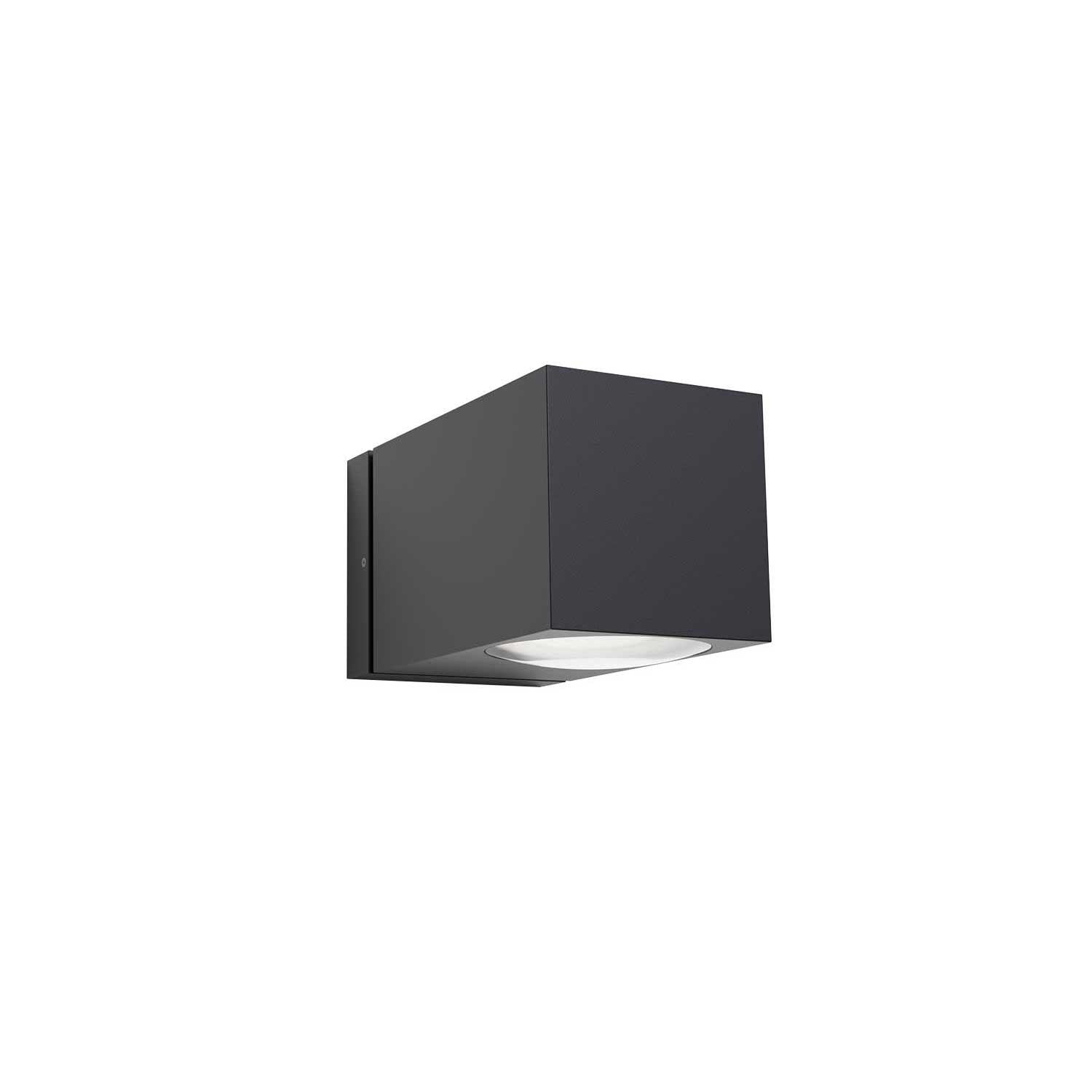 Como Down udendørs væglampe fra IP44 En firkantet kuboristisk LED lampe, med en målrettet nedadgående belysning, der også fås i en model, der lyser opned. Lampen er lavet i aluminium og fås i fem farver: Hvid, grå, antracit, brun eller sort, som alle har