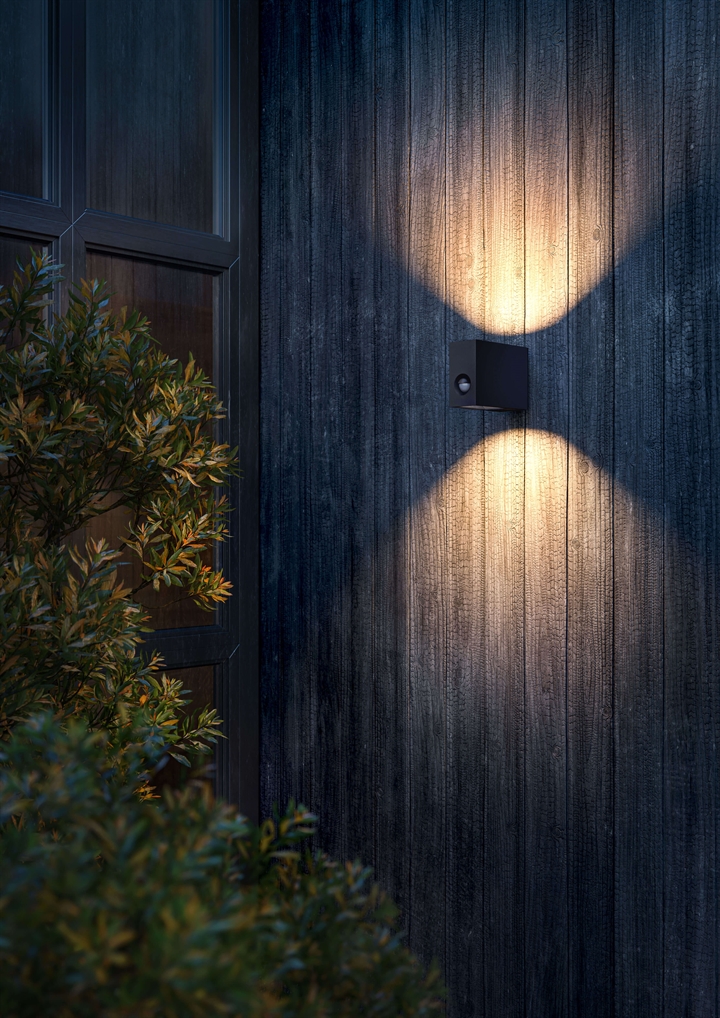 IP44. de Eye Control udendørs væglampe med sensor, deep black – designet af Klaus Nolting Eye Control i pulverlakeret trykstøbt aluminium er en stilren udendørslampe med bevægelsessensor og et godt lys, der er rettet både op og ned. Den funktionelle udend