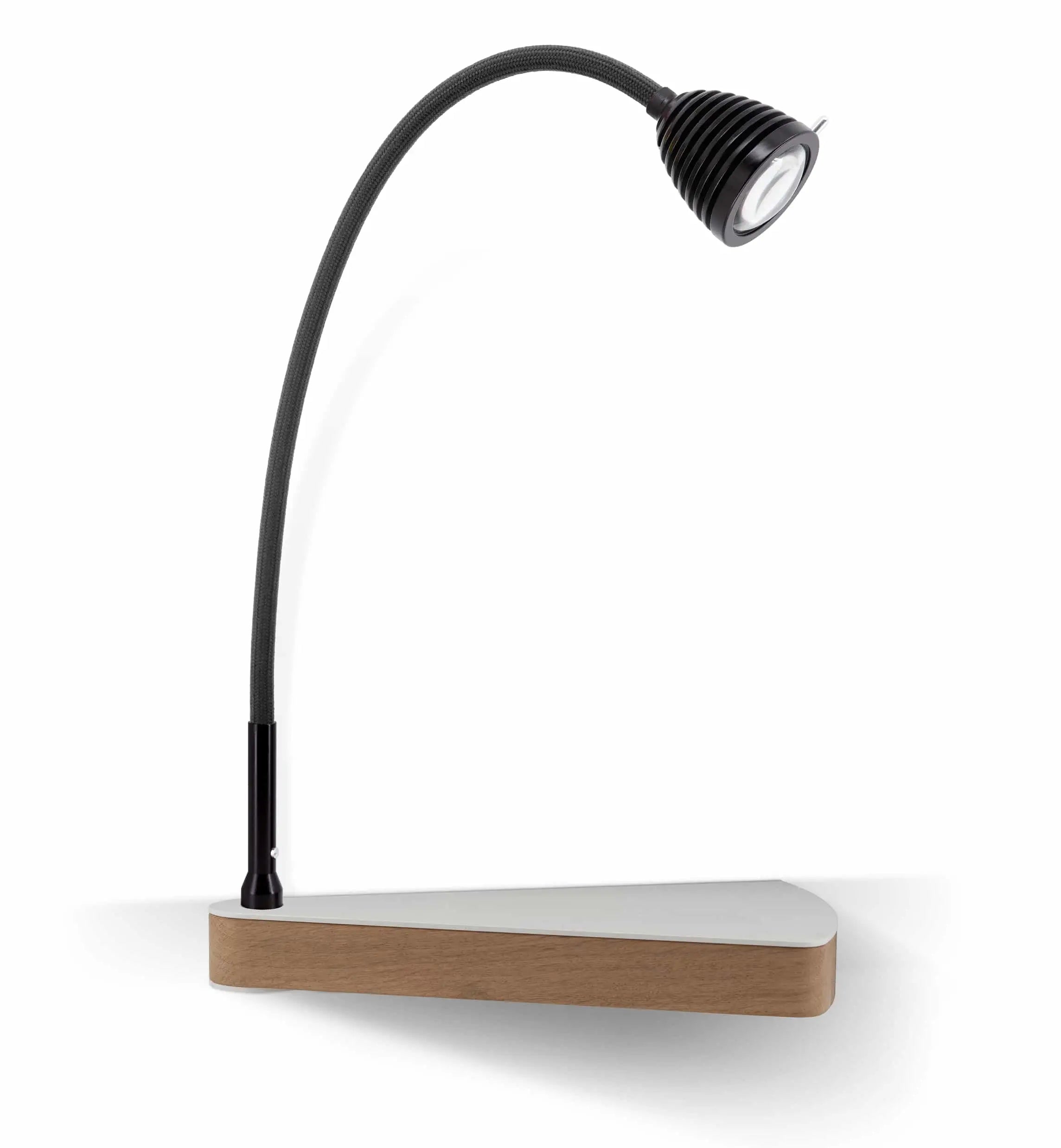 Dr. Wattson væglampe Less N More Dr. Wattson væglampe. Super lækker gennemført LED lampe i rå aluminium og med et lille sidebord i aluminium med skjult skuffe i massivt egetræ. LEDen er 7,5W og med en god farve i lyset 2700K CRI 95 og dæmpbar. Med et let