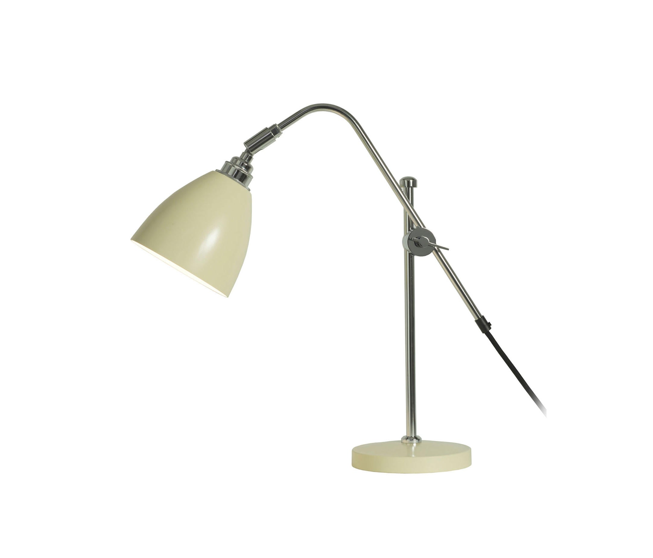 Task bordlampe Original BTC Den klassiske britiske bordlampe med krom stel og de 7 forskellige farvede skærme. Skærm farver i sort, blå, hvid , creme, grå, rød, poleret alu Task kan nå lidt længer og højere en Task solo bordlampen. Lyset er fremadrettet o